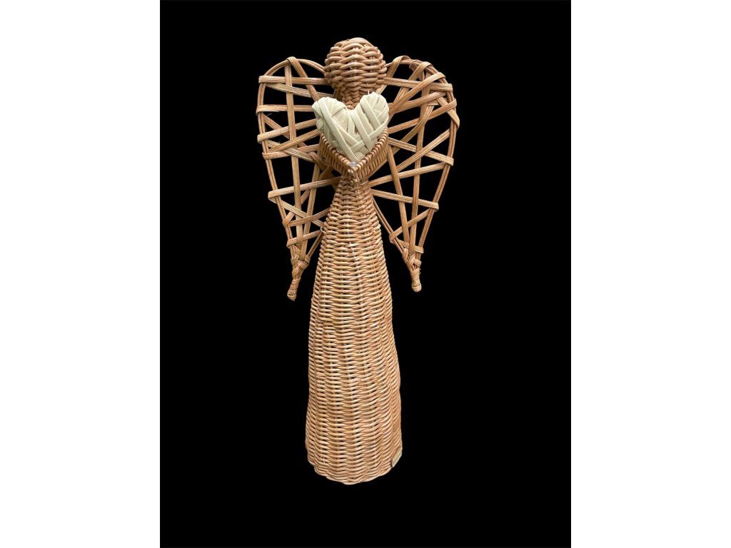 Elegantní anděl ručně vyrobený z hnědého pedigu zaujme svým jemným vzhledem a symbolikou. V náručí drží bílé srdce - detail, který dodává dekoraci nádech lásky a péče.