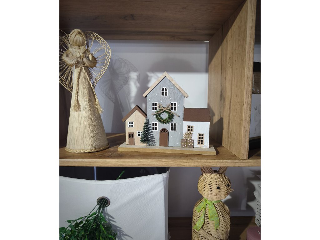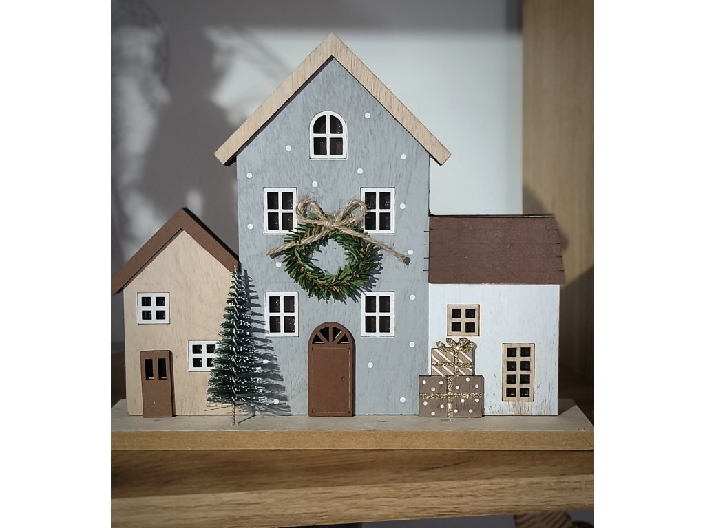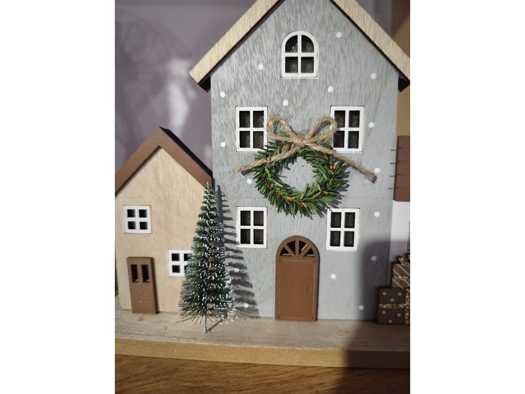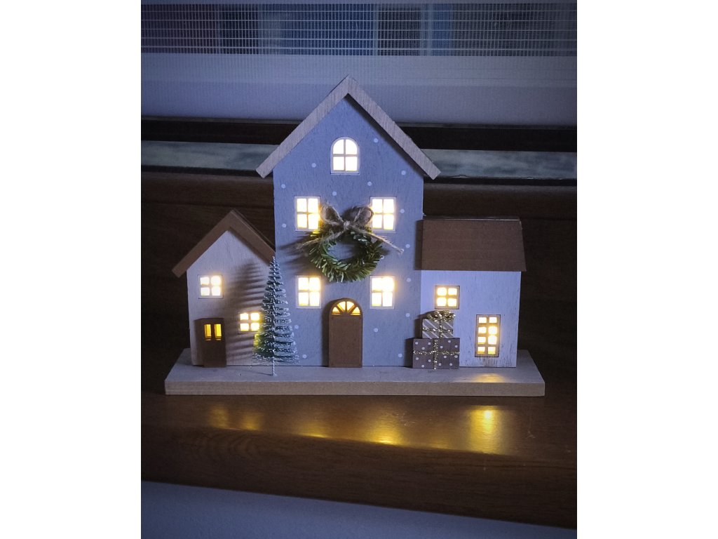 Kouzelný laserem vyřezávaný vánoční domek s detailní výzdobou – věnečkem, stromečkem a dárky. Po rozsvícení LED světýlek působí domek hřejivě a útulně, ideální pro vytvoření sváteční atmosféry doma i na chalupě.