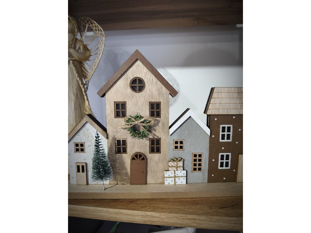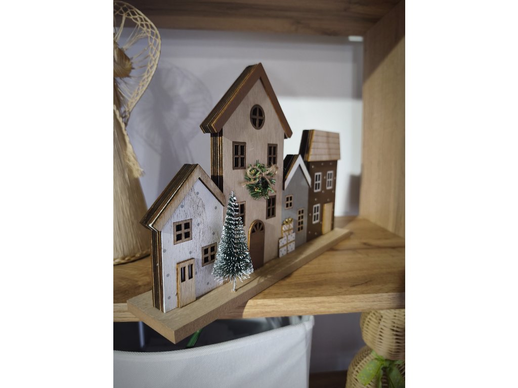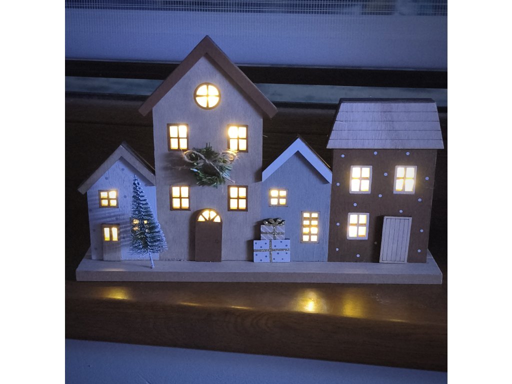 Dřevěná vánoční vesnička s LED osvětlením