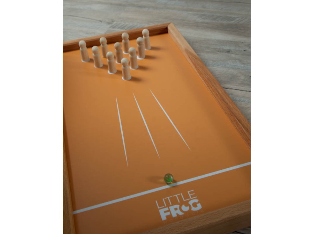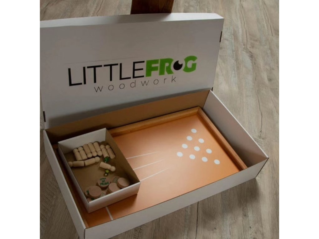 Tato ručně vyráběná dřevěná hra 2v1 nabízí dvě různé hry v jednom provedení – z jedné strany si zahrajete rychlou a soutěživou hru Sling Puck, z druhé klasické kuželky.