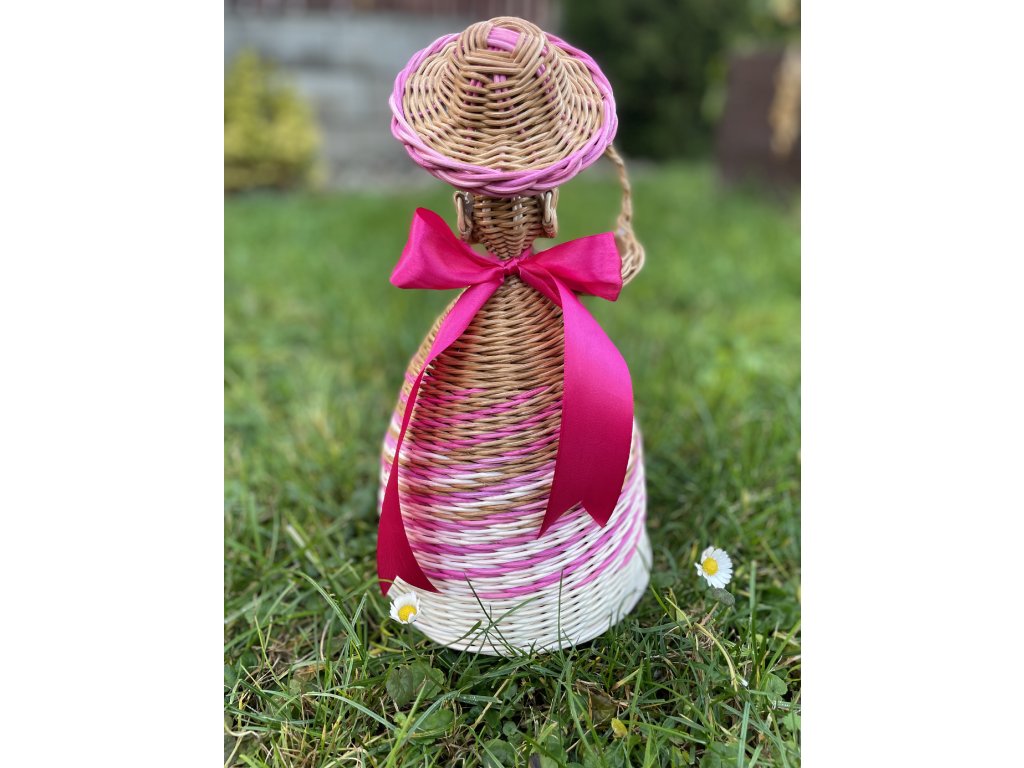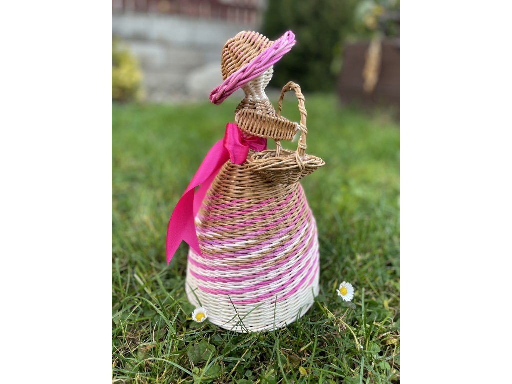 Ručně pletená panenka z pedigu s košíčkem a mašlí.