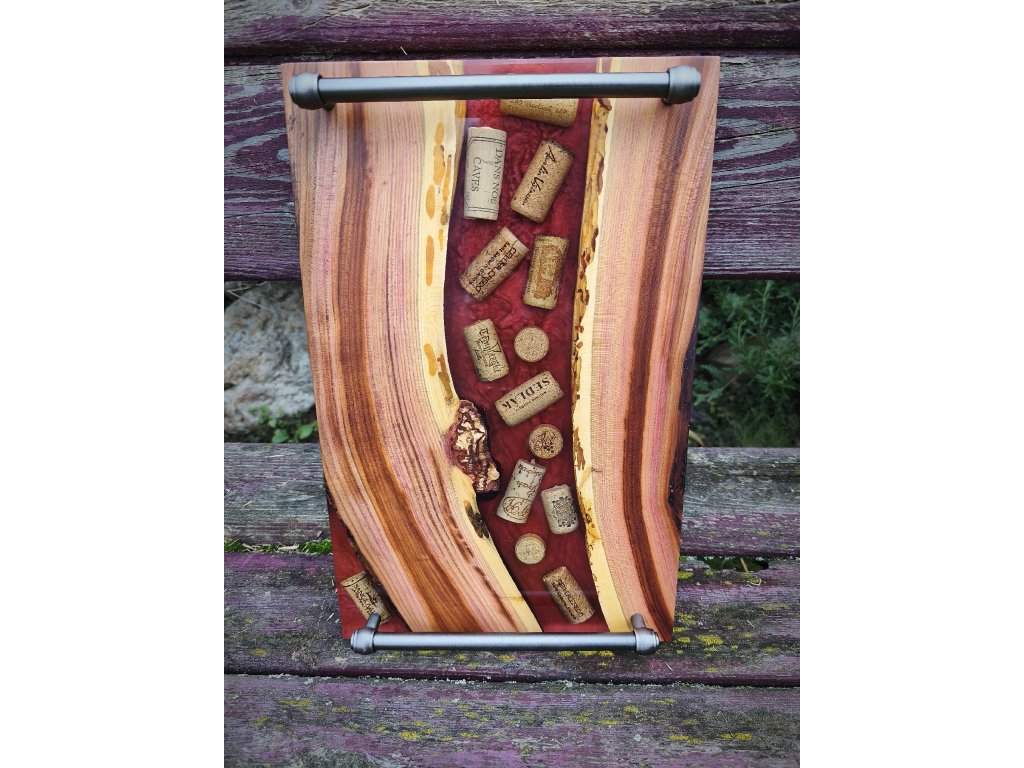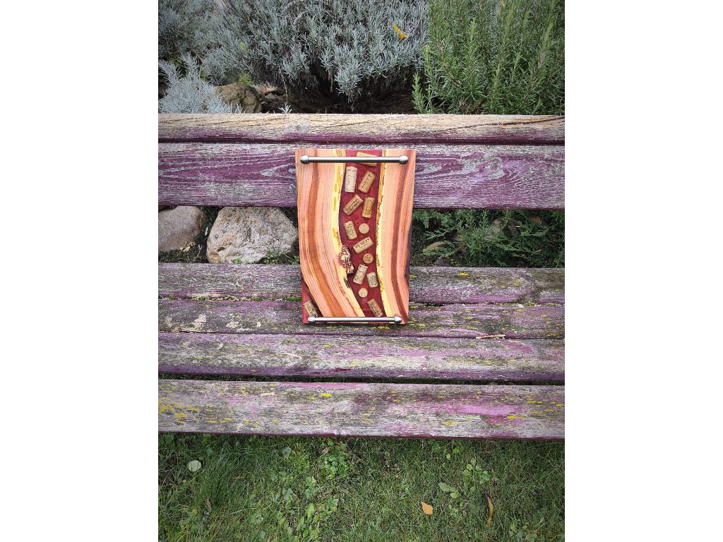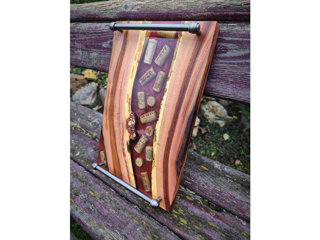 Podnos z ořechového dřeva s korky – vinná edice, červená pryskyřice